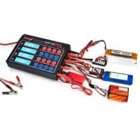 Chargeur X4 MINI GT Power 4 sorties pour accus NiMh, NiCd, Li-Ion, LiPo , LiFe, LiHV et Pb avec balancer intégré, sur 12 volts ou 240W (4x100w). Avec 4 circuit indépendant, DC Max : 100W x4 / AC Max : 200W Puissance allouée de manière intelligente entre les 4 sorties.