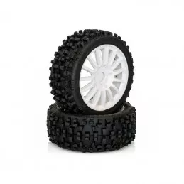 Pneus Hobbytech tout terrain 1/8 Maxi Cross montés sur jantes Blanches. Livré par 2. Pour TT 1/8 hexagone 17mm.