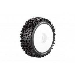 Pneus B-Ulldoze + Jantes pleines Blanches 1/8 Louise RC LR-T324SW Pneus montés collés sur jantes noires.Vendu par paire.