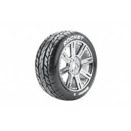 Pneus B-Rocket + Jantes bâtons Chrome Noir 1/8 Louise RC LR-T3190SCB Pneus montés collés sur jantes noires.Vendu par paire.