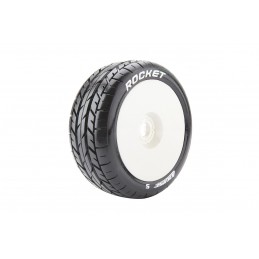 Pneus B-Rocket + Jantes pleines blanches 1/8 Louise RC L-T3190SW Pneus montés collés sur jantes noires.Vendu par paire.