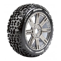 Pneus B-Ulldoze + Jantes bâtons Chrome Noir 1/8 Louise RC LR-T324SBC Pneus montés collés sur jantes noires.Vendu par paire.