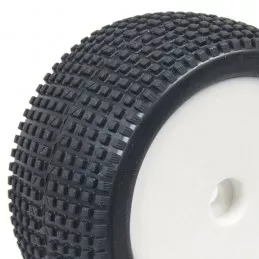 Pneus arrières E-Hornet + Jantes Blanches 1/10 Louise RC LR-T3172SWKR Pneus montés collés sur jantes noires.Vendu par paire.