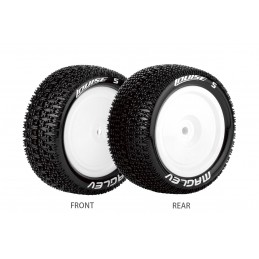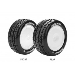 Pneus avants ST-Rocket + Jantes Blanches 1/10 Louise RC L-T3186SWKF Pneus montés collés sur jantes noires.Vendu par paire.