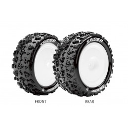 Pneus arrières E-Spider + Jantes Blanches 1/10 Louise RC LR-T3200SWKR Pneus montés collés sur jantes noires.Vendu par paire.