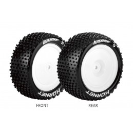 Pneus avants E-Hornet + Jantes Blanches 1/10 Louise RC LR-T3170SWKF Pneus montés collés sur jantes noires.Vendu par paire.