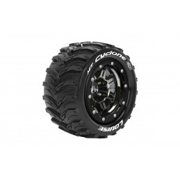 Louise RC Pneus Mt-Cyclone & Jantes 3.8 Noir L-T3220BH Pneus montés collés sur jantes noires.Vendu par paire.