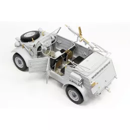 Le Type 82, plus connu sous le nom de Kübelwagen, était le véhicule tout-terrain par excellence de la Wehrmacht. Les Kübelwagen ont été utilisés sur tous les champs de bataille et, grâce à leur robustesse, ils ont pu faire face à toutes les les conditions climatiques. La grande échelle 1:9 permet déjà une très grande précision de la les détails de la Kübelwagen, qui peuvent être encore augmentés grâce aux pièces photogravées incluses dans le kit. peut être encore augmentée.