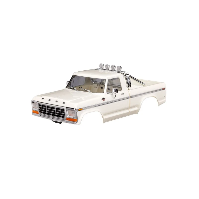 Carrosserie, camion Ford F-150 (1979), complète, blanche (comprend calandre, rétroviseurs latéraux, poignées de porte, arceau de sécurité, essuie-glaces, garniture latérale et montage sans clip) (nécessite les pare-chocs avant et arrière n° 9834).